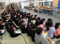 3年生の社会では、昔のくらしについて学習しています。この日は、まず市の学習施設「うみっこランド」を見学しました。漁業が盛んだったころの生活の様子や使っていた道具等を教えていただきました。