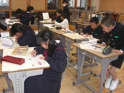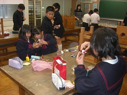 4年生は昨日、一人暮らしのお年寄りの方に届けようと、押し花の飾りを作りました。押し花のインストラクターのみなさんにご協力いただき、材料を準備していただき、作り方を教えていただきました。