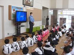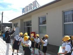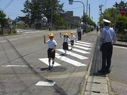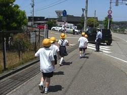 津幡署や交通安全推進隊、かほく市防災環境対策課の皆様をお招きし、安全な歩行や信号機の見方、横断歩道の渡り方などを指導していただきました。暑い日となりましたが、1年生は、がんばって歩きました。これから交通事故にあわないよう気をつけて登下校してほしいと願っています。