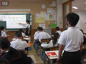 5年生は、互いに関わり合う学習を心がけています。授業では、少人数で、ペアで話し合いを重視する学習形態を取り入れ、全体でも「高松小の聞き方・話し方」を意識した聴き合いを大事にしています。今は、一つ一つそれぞれの学び方を振り返り、改善しながら進めています。また、「いいとこ見つけ」を書き、それぞれのよさを認め合おうとしています。みんな意識を高く持って取り組んでいます。