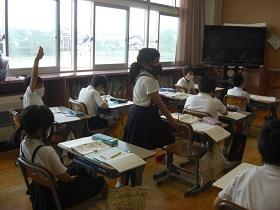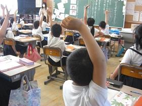 3年生では新しく理科の学習が始まっています。この日は、3年生がバッタを観察していました。体の仕組みをスケッチし、昆虫の体の特徴を調べました。子どもたちは、自分でいろいろな種類のバッタを捕獲し、草を入れて飼育しています。怖がらずしっかりと観察しています。