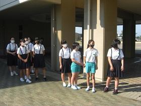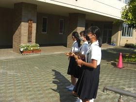 朝、玄関前で6年生が立って挨拶を呼びかけていました。「今朝は挨拶運動でしたか?」と声をかけると、「ボランティアとしてやっています。」とのことでした。自主的な姿の感心しました。厚かましく「もしよかったら、落ち葉を一人10枚ほど拾ってもらえませんか?」と頼むと、「はいっ!」と一つ返事でお手伝いをしてくれました。その後、時間が来たら「解散!」と互いに声をかけて教室に戻っていきました。さわやかな姿でした。