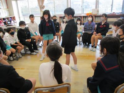 昼休みの時間になかよしタイムを行いました。今回は5年生が初めて企画運営を行いました。絵しりとりやジャンケン列車、なんでもバスケット、福笑いなど楽しい時間を共有しました。みんなが楽しんでいる様子を見て5年生も満足そうな顔をしていました。