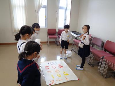 2年生が生活科の授業で作った「おもちゃランド」に1年生を招待しました。1年生は2年生の説明をよく聞いて楽しみながら行動する姿が見られました。2年生は1年生にわかりやすく伝えようと工夫する姿が見られ、どちらの学年も10月に一緒に行った遠足と比べてずいぶん成長し、とても頼もしく感じました。