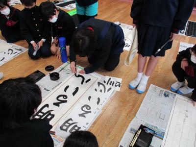 子どもたちは1月の書き初め大会に向けて書き初め練習を行っています。4年~6年生は習字教室の竹中絹子先生に書き初めの書き方のポイントを教えて頂いてます。最初に模範の書き方を見せて頂いたときは、その作品の美しさに思わず拍手が起こりました。その後それぞれの練習の時に個別の指導をして頂きました。今日、教わったことを思い出しながら冬休み中に練習を重ね、本番を向かえて欲しいものです。