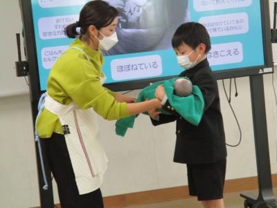 2年生を対象に、石川県助産師会のみなさんによる「いのちの健康教室」が行われました。どのようにして命の元が生まれ、母親のお腹の中で育ち、産まれてくるのかをスライドや人形を使って、分かりやすくお話しくださいました。子どもたちは、こうやって生まれてきた命の大切さを改めて感じ、自分の大切な命を守るという思いを強くしていました。