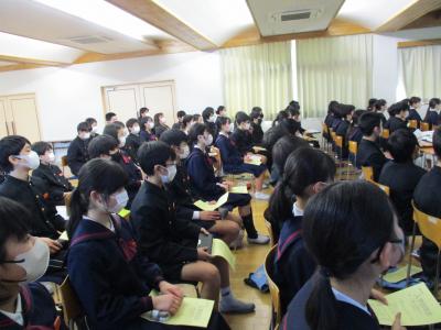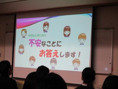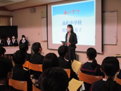昨日の午後、高松中学校の入学説明会が行われました。始めに、漢野校長先生から、中学校に向けて、小学校の勉強をしっかり行うこと、規則正しい生活をすること、友達と仲良く思いやりの心を持つこと、この3つのことをがんばるようお話がありました。その後、生徒会の皆さんから、部活動の紹介や、中学生生活に対するアドバイスを頂きました。具体的な悩みに対するアドバイスは、中学進学に対する不安を少し解消してくれたのではないかと思います。