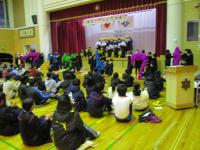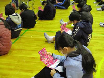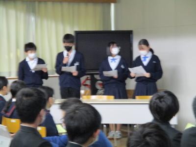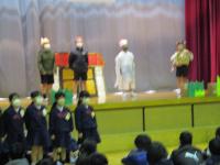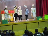 インフルエンザの流行で延期されていた6年生を送る会を今日の午前中、2部に分けて行いました。1部は4年生と1年生が、2部は2年生、3年生、5年生が出し物を行いました。どの学年も6年生への感謝が伝わる内容で、1年間の成長を感じることができました。特に、5年生は、送る会の企画、運営にあたり、生き生きと活動する姿が見られ、最高学年へ成るこへの意識の高さを感じました。6年生にとって思い出に残る、心温まる会となりました。