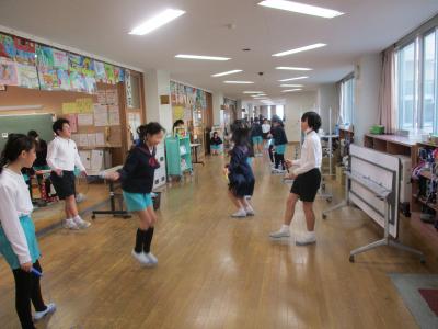 冬場の体力づくりの一環として、今週からなわとびチャレンジ週間がスタートしました。なわとびチャレンジカードに書かれた技や回数を少しでもクリアーしようと、休み時間にホールや廊下で練習しています。一人で黙々と練習する子、ペアや輪になって協力して練習する子等、元気な高松の子どもたちです。