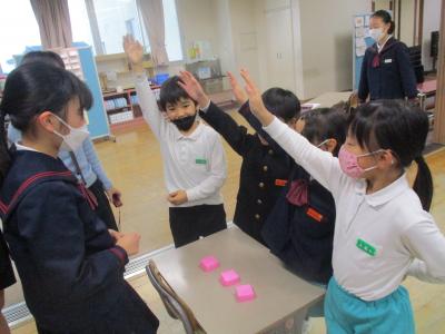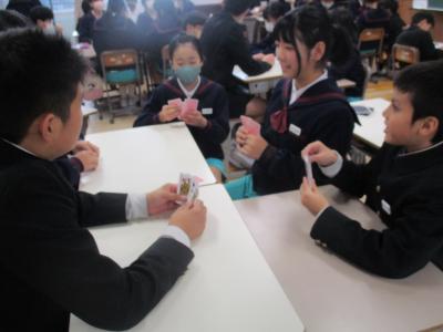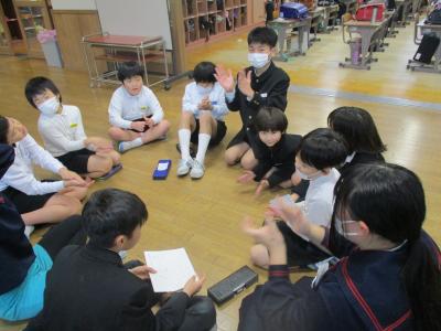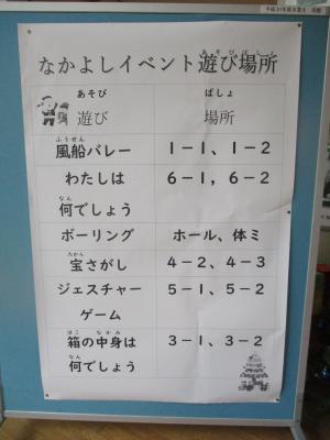 今年2回目のなかよしイベントが行われました。今回も6年生が企画運営した6種類の遊び(風船バレー、私は何でしょう?、ボーリング、宝さがし、ジェスチャーゲーム、箱の中身は何でしょう?)を1年生から5年生のなかよし班で回りました。点数やタイムを競う遊びもあり、班で協力しながら楽しく遊ぶことができました。最後のふり返りでは、1つ上の学年のメンバーにいいとこ見つけカードを書いて渡しました。友達の良さ、自分の良さを感じることができたイベントになりました。