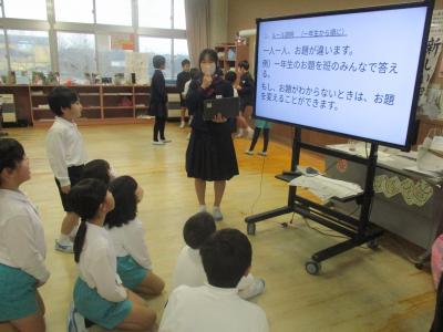 6年生が、かほく市給食センターの栄養教諭お二人と、かほく市役所健康福祉課の保健師さんによる「中学校に向けての食育と健康」についての授業を受けました。事前に行ったアンケートによると、毎日朝食を食べている6年生の割合は約90%でした。また、朝食の内容を見ると、おかずを食べていない人が半数以上でした。成長真っ盛りの時期です。これからの中学生生活に向けて、どんな栄養がどれだけ必要か、また、血管や心臓などの模型を見ながら、私たちの体に起こるかもしれない病気についても学びました。6年生は、中学校の写真を見ながら自分が進学する学校や数カ月後、何年後の自分を思い描きながら、授業を受けていたようでした。朝ご飯を食べること、夜はしっかり睡眠をとること、体を動かすことを実践していきましょう!