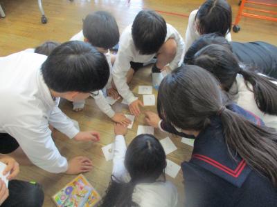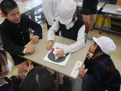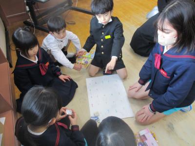 縦割りグループでのなかよし遊び(新年会)を行いました。カルタやすごろく、福笑いなど、今回は5年生が企画、準備、運営を行いました。初めての経験で、スムーズな運営ができなかったところもありましたが、グループのみんなが楽しく活動してる様子を見て、リーダーとして少し自信がついたようでした。これから6年生を送る会や、卒業式の準備などを通して、新しい学校のリーダーとして成長していくことを期待しています。