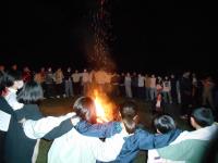 1日目は,午前中にウォークラリー,午後からはサイクリングまたはアーチェリー,キャンプファイヤーを行いました。キャンプファイヤーでは,各クラスからの出し物が披露され,学年が一つになって盛り上がり,絆をより深めることができました。