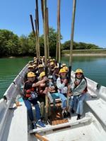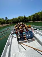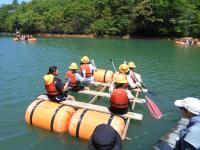 2日目は,午前中はカッター(大型手漕ぎボート),カヌー,いかだに分かれて自然を体感しながら,水に親しむ活動を行いました。午後からは班ごとにディスクゴルフを楽しみました。
