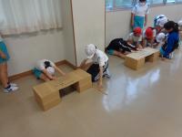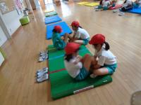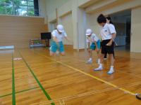 今日は,第1回の顔合わせの会だったので,6年生がみんなの名前を覚えられるような楽しいゲームを企画してくれました。グループの児童の名前が書かれたカードを使った神経すいじゃくや,名前を呼びながら相手にパスをする風船バレーなどです。どのグループも,笑顔で活動を楽しむ姿が見られました。