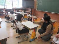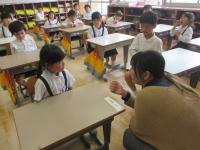 5月30日(木)に,高松中学校で英語を教えているグレース先生(アメリカ出身)にゲストティーチャーとして来ていただき,1年生と英語の勉強を行いました。今日のめあては〈えいごで あいさつを しよう〉です。グレース先生に英語のあいさつを教えていただき,元気にあいさつをすることができました。一人ずつグレース先生の目を見て,笑顔で上手にあいさつしていました。明日は,2年生の日です。どうぞお楽しみに!