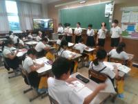 朝学習では1〜4年生の教室に6年生が赴き、応援を教えていました。今週は6年生が毎日朝教えに行きます。19日の運動会本番に向けて盛り上がって言ってほしいです。