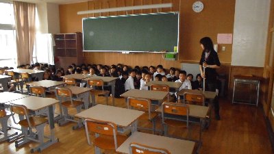 今日は、はるばる石川県リハビリテーションセンターから片田さんと山岡さんにお越しいただいて4年生が福祉について体験学習をしました。