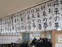 その後、書き初め大会を行いました。1、2年生は硬筆でそれぞれ「ふじ山」「元気なあいさつ」を書きました。3、4、5、6年生は「友だち」「明るい心」「新しい風」「将来の夢」を書きました。冬休みに練習した成果を発揮し、真剣に取り組む姿が見られました。