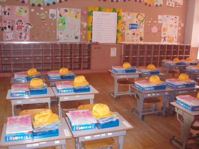 1年生の教室、体育館、玄関、心を込めて入学の準備をしました。週明け新入生が登校するのを心待ちにしています。元気に登校してきて下さいね。