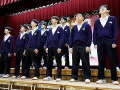 合唱コンクールの最優秀賞は、1年3組、2年1組、3年2組が受賞しました。2年1組と3年2組は、6日(月)に河北台中学校講堂で開催する河北郡市中学校音楽会に参加します。