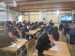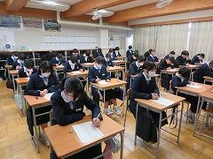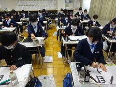 3年生は10月、11月に続き、3回目の河北郡市統一テストが行われました。今月16日(火)からの三者懇談で、私立高校の受験校を決定することになります。試験科目の順序も公立高校入試と同様に国語、理科、英語、社会、数学の順になっています。(3月の本番では、1日目に3科目、2日目に2科目実施されます。)そのためか、3年生教室からは緊張感も伝わってきました。