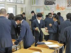 これまでの学びの定着を図ることを目的に3年生は4回目の郡市統一テスト、1・2年生は実力テストが行われました。3年生は、明日の私立高校推薦入試より受験シーズンが始まります。明日の試験の頃は雨・雪の予報は出ておらすホッとしていますが、体調管理に気を配り「3つのあ(あわてず、あせらず、あきらめず)」を心に留めて、最後まで学習を続けてほしいと思います。