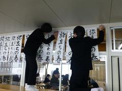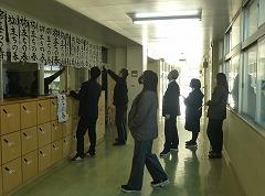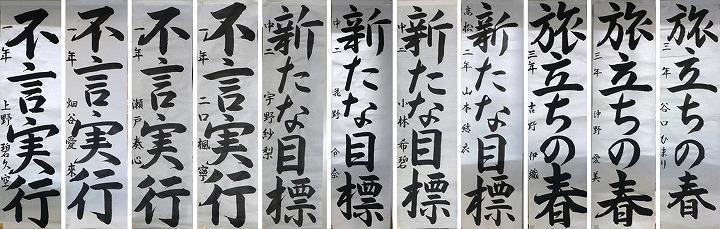 冬休み課題「書き初め」が教室横廊下に展示されています。昨日、生徒が下校した後で各学年職員が審査をしました。そのため、生徒は今日の登校後に入賞作品を知ることになりました。ここでは金賞作品を紹介します。全入賞者(銀賞、銅賞を含む)の一覧は、下のリンクからご覧ください。