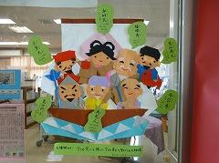学校に生徒が戻ってきました。午前中は、朝清掃の後に始業式、書き初めの展示など学級での時間がありました。各クラスでは、今年の目標を「漢字一文字」で表す掲示物を作成したり、簡単なエクササイズを通して久しぶりの再会を楽しんだり、にぎやかな3学期の幕開けとなりました。また、学校図書館の入り口には「大鳥居」と「七福神」の掲示がありました。他にも、絵馬を書くコーナーや図書ボランティアの方が作成した御守りが配られるなど、年明けを祝う雰囲気が感じられます。令和8年が皆様にとって、穏やかな一年になることを願うばかりです。