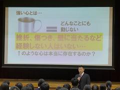 後半は、先週の学級活動の時間に各クラスで討議された「理想のクラスと、そのクラスを目指す取組」の発表と、「人との関わりの中で大切なこと」について全体で話し合いました。大勢の生徒の前でも多くの手が挙がり、堂々と意見を述べてくれました。とても勇気のある行動でした。