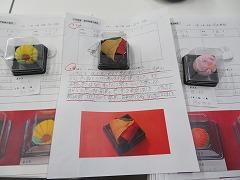 今年度も2年生が美術科の授業で制作した「創作和菓子」が商品化され、高松地区の店頭にならびます。また、商品化された和菓子の販売のほか、生徒が授業で制作した作品の展示も同時に行われます。この商品化の取組は「かほく市コミュニティ・スクール事業」の一環として行われ、美術科での学びが、社会とつながっていることを実感することに、この学習の価値があります。写真は12日(金)に本校で行われた、商品化する作品を選定しているようすです。和菓子店のご主人が、作品だけでなく、生徒の感想文に書かれた作品への思いもくみ取って選んでいただきました。