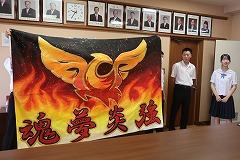 昼休み、生徒玄関前に今年度の生徒会目標「FLY HIGH ~自由に翔けろ~」の横断幕が掲げられました。その瞬間を見るために、多くの生徒が生徒玄関前に集まりました。写真のように、生徒会目標そのままの、躍動感溢れる横断幕になっています。ぜひ、今年度の学校生活が飛躍する一年でありますように。