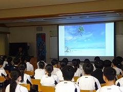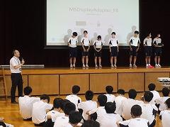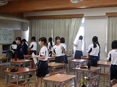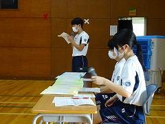 全校集会では、校長先生より今月のキーワード「人は多面体」が示され「互いに見えない部分が多くあるので、決めつけたり、思い込んだりするのではなく、相手の気持ちを大切に話を聴くことから始めよう」と話がありました。続いて、生活・学習担当の先生から、6月の学習目標「素敵な聴き方、話し方をめざそう」生活目標「正しい服装に気を配ろう」について具体的に目標達成のポイントが示されました。その後は、生徒会執行部、給食委員会、保健体育委員会から5月の活動報告と6月の取組の紹介がありました。6月の委員会活動の様子は、この欄で紹介します。