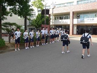 前段で前期生徒会が企画した「全校レクリエーション」についてお知らせしましたが、10月から後期を迎える学校では、後期の組織づくりが9月に行われます。今朝は、生徒会執行部、専門委員会委員長に立候補した13名が選挙運動を兼ね、あいさつ運動を行っています。なお、立候補者の立会演説会は15日(金)に行われます。13人がステージ上で述べる抱負が楽しみです。