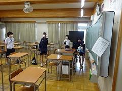 放課後に生徒会長の 増田 朋香 さん、保健体育委員長の 白江 吾衣翔 さんが、校長室を訪ねてきました。用件は、感染症対策が緩和されたことにより、従来通り、昼休みの体育館使用を認めてほしいという訴えでした。生徒会、保健体育員会が全校生徒にアンケートをとり、安全、時間、用具の取り扱いなどについて4点のルールを作成し、作成までの経緯を説明してくれました。全校生徒の意見を汲んだり、体育科の教員に尋ねたりと、練って作成したルールであることが伝わったので、使用を許可しました。今後、運用について細かいところを決め、全校集会で生徒に知らせるとのことでした。自分たちで、学校生活をよりよいものにしていくという姿勢が素敵でした。
