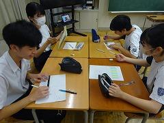 5限に3年2組で行われた「言語技術トレーニング②」のようすです。言語技術トレーニングは、本校の学力向上の取組の1つで、4月、9月の年2回、すべてのクラスで行います。4月は「結論を先に述べ、根拠を必ず伝える」といった発表スタイルを用いた対話の練習をしました。