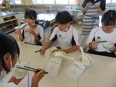 特産品班②・・・校内で特産品や炊いたお米の食べ比べをしました。また、糖度計を使ってお米の糖度も調査しました。