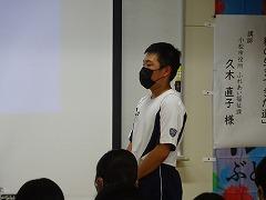 講師の久木氏は脊髄性小児麻痺を患い、車椅子での生活をしていらっしゃいます。久木氏の母の「1番かわいそうなことは、親が亡くなったあとも1人で生きていくこと」の思いから幼児期の生活から厳しくして鍛えられていたとのことです。健常者と同様の保育所、小学校、中学校時代のお話しや、車椅子マラソンなどのスポーツに取り組姿勢から「何事も真剣に取り組むこと」を信条としていることや、「自分の可能性を見つけたときの感動」が原動力になっていることをメッセージとして伝えられました。