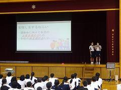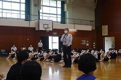 6限に16日・17日(土・日)に河北郡市を会場に開催される新人大会の壮行式が行われました。部活動が1・2年生にバトンタッチしてから最初の河北郡市の大会です。今回は、かほく市内でも感染症拡大傾向があることや、大会直前ということより生徒全員がマスク着用で行いました。選手の顔がしっかり見えないことが残念でした。