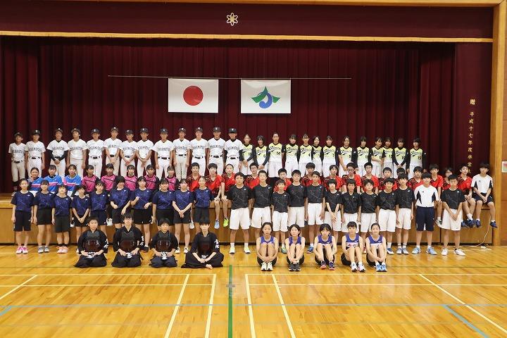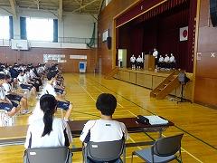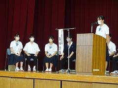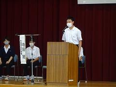 今年の夏は、暑さのため8月上旬から練習を中止にせざるを得なくなり、練習時間も例年より少ない中で心や体を鍛えてきました。各部活動のキャプテンからは「日々の練習の成果を発揮する」「優勝をめざす」「夏休みから1人1人が目標を設定して練習に励んできた」など、大会にかける熱い思いや決意を聞くことができて、とても頼もしく感じました。校長先生からは「『勝ちたい』ではなく『勝つ』、『負けたくない』ではなくて『負けない』の強い気持ちと自信を持って、最後まであきらめずに戦ってきてください」との激励の言葉がありました。