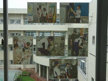 先週、行われた2年生の職場体験の写真が、教室横廊下に掲示されています。2年生の職員が体験の様子をカメラに収めたものを掲示し、体験先から学校に戻ってきた生徒を迎えていました。どの写真も「仕事に熱中している」いい表情をしています。また、2年生は昨年、夏休み課題として「はたらくすがた」写真コンテスト(写真下段)を実施しました。昨年の「身近な大人の働く姿」と今年の「自分自身の働く姿」の対比から考えることも多くあると思います。昨年度から学習を始めた職業についての学習も終盤に入ります。「働くこと」を切り口に、自分自身のこと、自分の将来のことを見つめる時間が持てると嬉しいです。