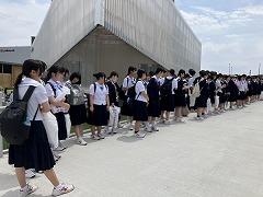 3年生は、修学旅行3日間の予定をすべて終え、高松中学校への帰路につきました。「万博会場」では、最初に全員で「三菱未来館」を見学した後、会場内自由行動となりました。会場内がとても広く生徒と出会うことが難しく写真は少ないです。その分、お子様から話を聞いてください。広い万博会場にもかかわらず、出発前の集合も5分前に完了し、学年プロ委が発案した「3つの誓い」を守る素敵な最後になりました。この旅行のために準備を重ねてくれた学級プログラム委員会の皆さん、ありがとうございました。