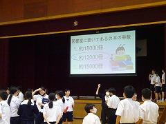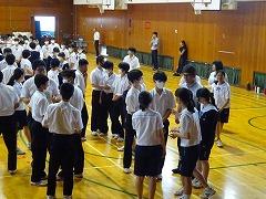 今年度の生徒会目標「STAND BY ME」に込められている「一人一人がみんなに寄り添う」雰囲気をつくるために、生徒会執行部、専門委員長の皆さんが企画した「全校エンカウンター」が5限目に行われました。運動会の団に分かれての「整列ゲーム」「猛獣狩り」「高松中学校にまつわるクイズ」のゲームを、学年を超えて楽しみました。今日の雰囲気が、9月の運動会につながることを期待しています。