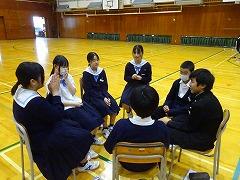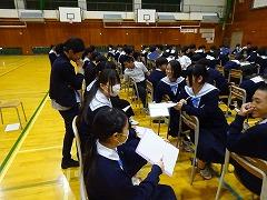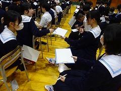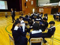2年生は、5限に本校にSC(スクールカウンセラー)として勤務されている 古市 俊郎 先生から「コミュニケーション」について学ぶ人間関係づくりの特別授業を受けました。実験やゲームを通して、先生から「コミュニケーションは単なる『言葉のやりとり』ではなく、双方向で分かち合うことが大切であること。思い込みや先入観が誤解を招くこと。」などを教えていただきました。コミュニケーションの科学的な理解を深めて、人間関係づくりのヒントをもらった1時間でした。
