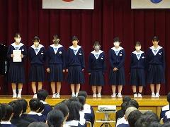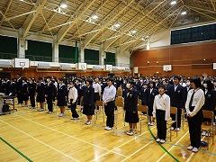 5月の全校集会が行われました。集会に先立ち、この欄でも紹介した河北郡市春季大会や学校外での活動において優秀な成績を収めた生徒の表彰披露が行われました。全校集会では、校長先生より今年度から「5月3日を創立記念日」としたことより、今月のテーマを「その一歩が、やがて道となる」として一人一人の一歩は小さいけれど、およそ80年間続く高松中学校、これまで本校を卒業した12,000人を超える生徒の一歩が集まると道になって、これからも続いていくことに思いを馳せてほしい。」と話がありました。※ 話の詳細な内容は「学校だより5月号」をご覧ください。