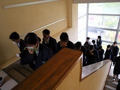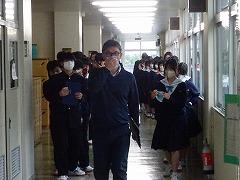 6限後、火災を想定した「避難訓練」が行われました。落ち着いて、静かに行動していたと思います。今日の目的は、各教室からの避難経路を確認することが目的です。学級で避難経路と避難時の行動について確認したあと体育館へ避難しました。講評をいただいた、かほく市消防本部消防署高松分署の 能戸 様からは「中学生だから、静かに体育館に避難できるのは当たり前、最悪の事態を想定して、考える避難避難訓にしてほしい。」と話がありました。学校で災害に遭った場合は「1人の行動が、同じ学校で過ごす250人を超える命にかかわること、一人一人の心がけが大切。」という訓練の持つ意味を改めて考える機会になりました。
