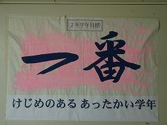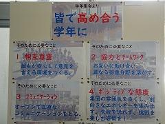 以下に掲載した写真は、教室や、教室横の廊下にある掲示物の一部です。授業がスタートして2週間が経過しました。現在、掲示されているものは学年、学級の目標や集会での内容が多いですが、これから生徒が作成した学習の成果も増えていきます。この欄でも紹介していきますが、授業参観の機会に、ぜひ、ご覧になってください。