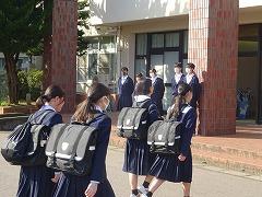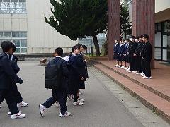 先週金曜日(18日)から「朝のあいさつ運動」がスタートしました。初日の18日は、3年生のプログラム委員会、今日(21日)は生徒会執行部の皆さんが生徒玄関前で元気に「おはようございます」のあいさつを交わしていました。あいさつの声も大きくなってきました。会釈してあいさつをする生徒も多くなってきました。この姿が当たり前になって、恥ずかしさが消えるといいですね。