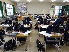 3年生は午後から全国学力調査(理科、質問紙)が実施されました。(写真 上段)今日の調査は、タブレットを使用して行われました。3年生は16日(水)に県の基礎学力調査(社会、英語)、17日(木)に全国学力調査(国語、数学)が行われます。この調査は先週実施されたかほく市の学力調査と同様、生徒の学力や学習状況を把握・分析し、今後の指導内容や指導方法の改善を図ることを目的として実施しています。そのため、通知表等の学校の成績には反映されません。