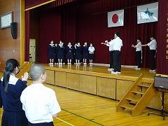 本校の陸上競技部の練習からは、身体、技術だけでなく、心も鍛えている部活動だと伝わります。キャプテンの桶谷 柚菜 さん(3の1)が「お互い助け合い練習を頑張ってきました。1人でも多くの県体出場権をめざす」と力強く決意を述べました。